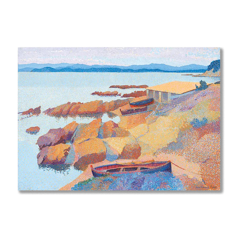 The sparkling essence of a Mediterranean day is captured here with bold colors and distinct pointillism to create a mosaic of light. It’s a good look at the beauty of structure, and is perfect for creating cheerful but not loud moods. Suits a variety of interior styles.