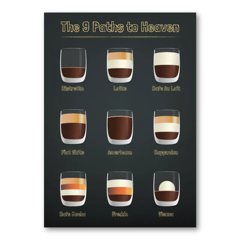 Stylish coffee recipe inspiration with handwritten labels on traditional blackboard. The dark theme is pretty classy.