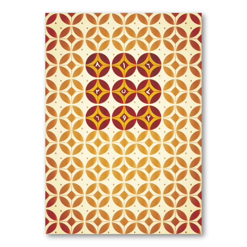 Art deco, mid-century and minimalist interiors will welcome this authentic Oriental magic spell for protection with reds and yellows for energy. Discovered while researching ‘Karma Crime‘.