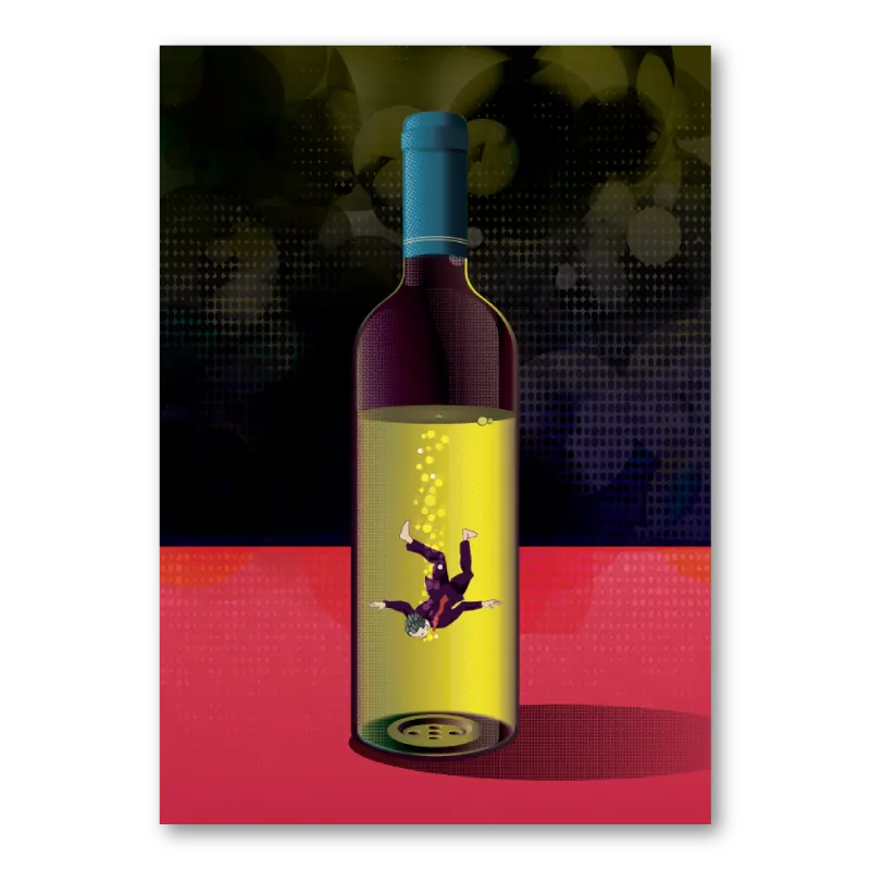 Bold brights on moody backgrounds underline the theme of prioritizing your sanity amidst closet vampires. Suits mid-century modern, industrial, art deco interior styles.