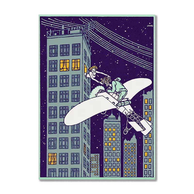 An intimate conversation captured in a grand urban setting cleverly juxtaposes privacy with modern social dynamics. It’s a charming picture, a little absurd too, which makes it perfect for adding a witty touch to your living spaces.