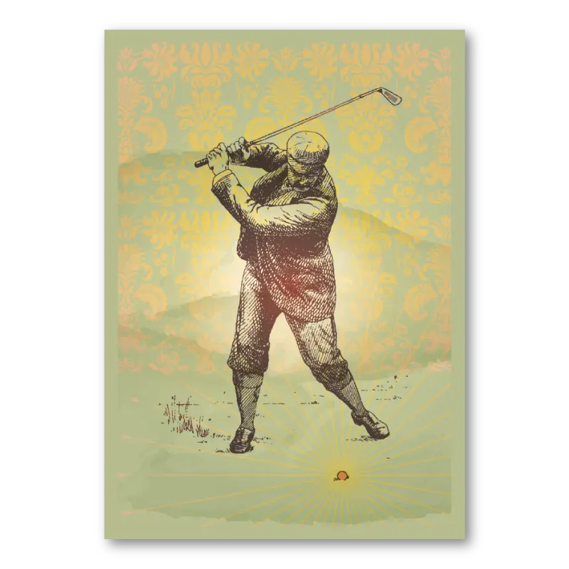 Vintage linework, pattern and colour combine in this picture to express the ‘zone’ that golfers are continually mastering along with their swing.
