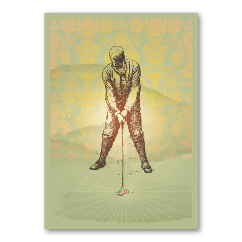 Vintage linework, pattern and colour combine in this picture to express the ‘zone’ that golfers are continually mastering along with their swing.