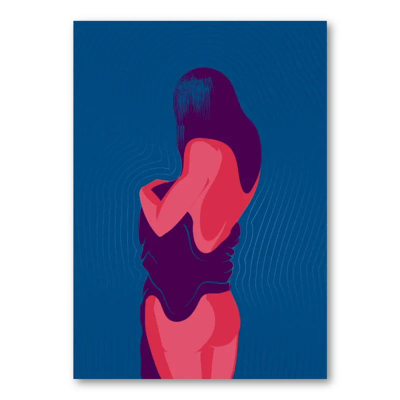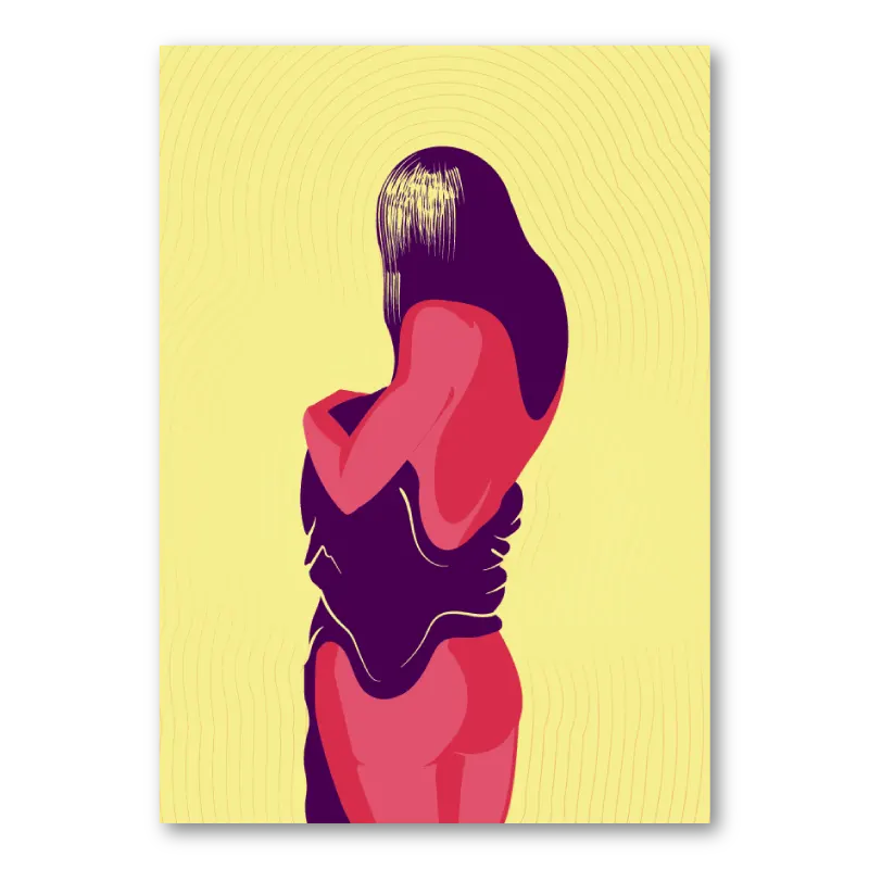 Warm embraces are captured here in a personal moment with a modern graphical style. Use the yellow colour option to create happiness or the blue for quieter, more introspective, moods.