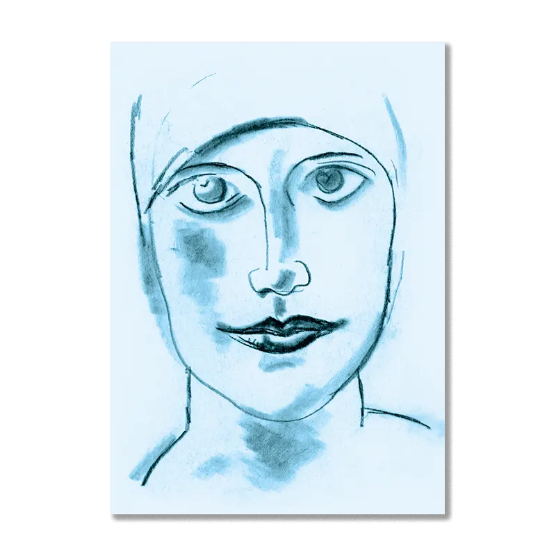 Gaze into the expressive depths of this striking portrait. The bold lines and subtle pink palette expressive the feminine inner world, and the profound strength found in quiet reflection. It’s a dramatic picture with an introspective mood that’s ideal for modern or thoughtfully curated interiors.